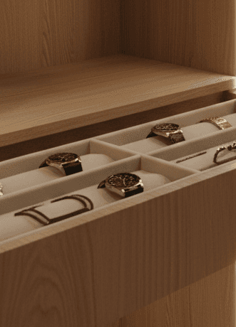 The objective was to transcend traditional storage by treating the wardrobe as an extension of the home’s architecture. In this Laguna Beach estate, we utilized floor-to-ceiling European Walnut systems, eliminating visual noise through handleless integration and recessed LED channels. The result is a sanctuary that balances functional engineering with a serene, high-end boutique atmosphere.