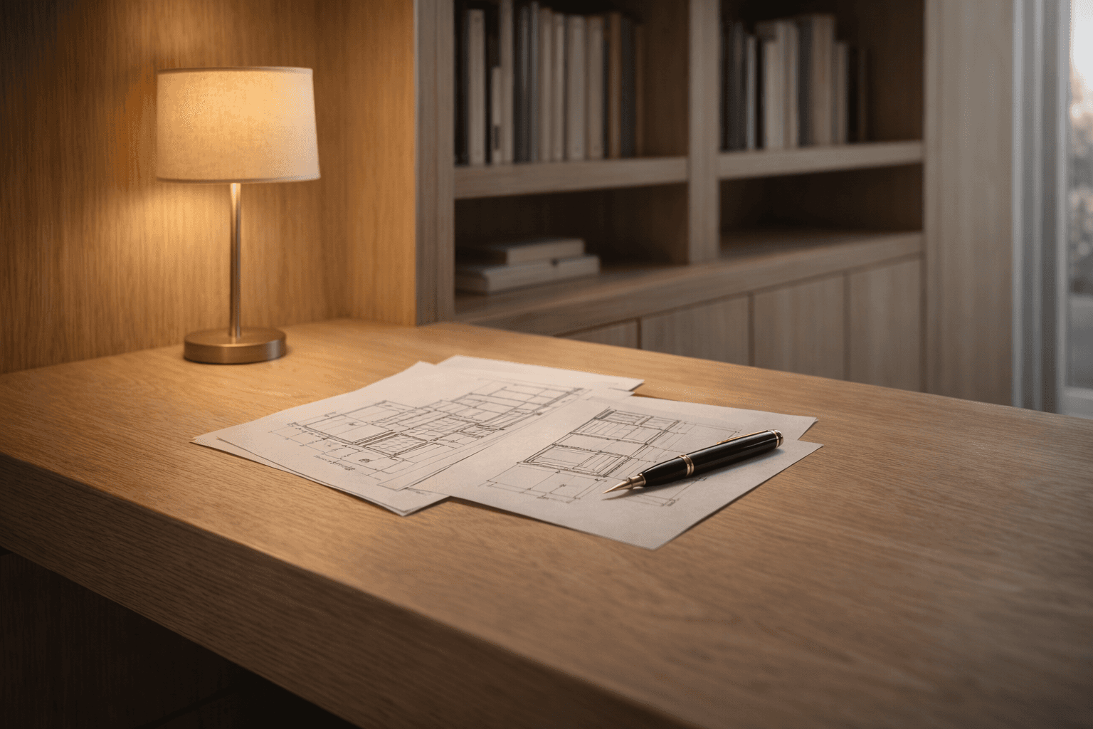 The Newport Executive Studio was designed as a high-performance environment where architectural precision meets professional serenity. Moving away from the soft textures of a wardrobe, this workspace utilizes a more rigid, rhythmic cabinetry system in light oak to foster deep focus. We integrated recessed linear lighting to eliminate shadows on the workspace and utilized handleless, touch-to-open technology for a completely flush, wall-like appearance. Every shelf was engineered to handle significant weight without compromising the slim profile, creating a perfect balance between a library's utility and a modern studio's minimalist elegance.